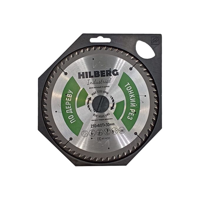 Диск пильный по дереву Industrial 210х30 мм, 60Т, тонкий рез Hilberg HWT212