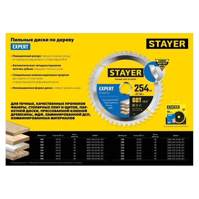 Диск пильный по дереву, точный рез STAYER Expert 3682-165-20-40_z01 165 x 20/16мм