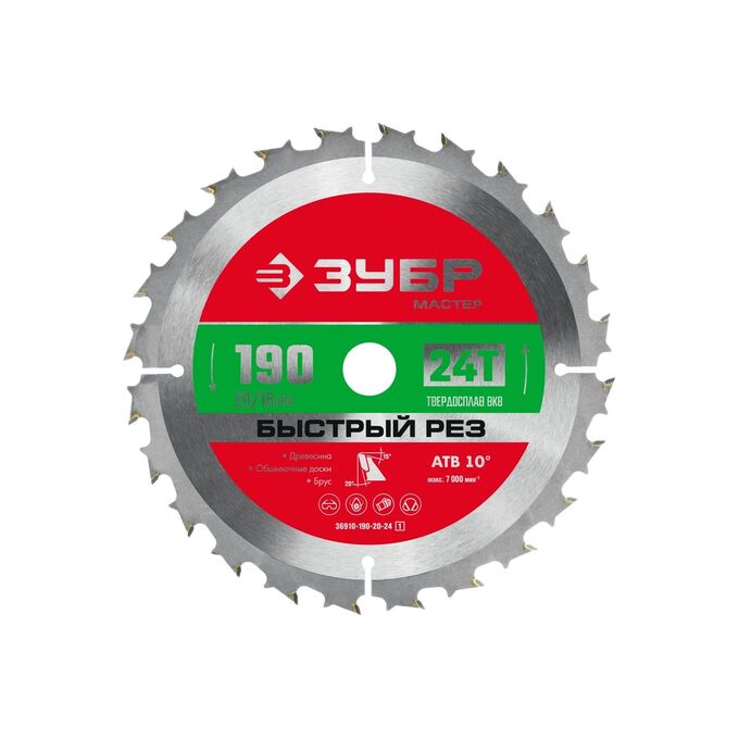 Диск пильный по дер. Зубр 36910-190-20-24_z01 d-190мм d(посад.)-20мм (циркулярные пилы)