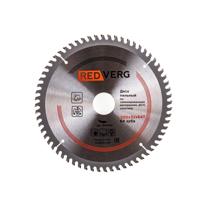 Диск пильный по ламинату твердосплавный REDVERG 800501 (6621255) 200х32/30 мм, 64 зуба