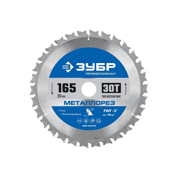 Технические характеристики пильного диска по металлу и металлопрофилю ЗУБР 36932-165-20-30