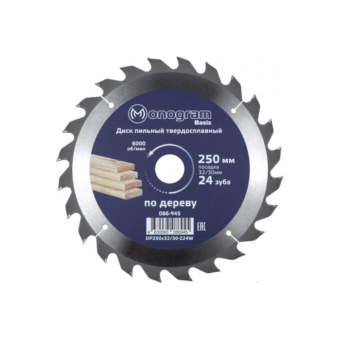 Диск пильный твердосплавный MONOGRAM Basis 086-945 250х32/30мм, 24 зуба