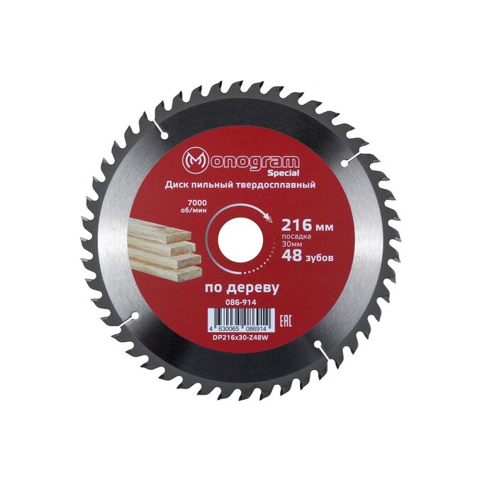 Диск пильный твердосплавный MONOGRAM Special 086-914 216х30мм, 48 зубов