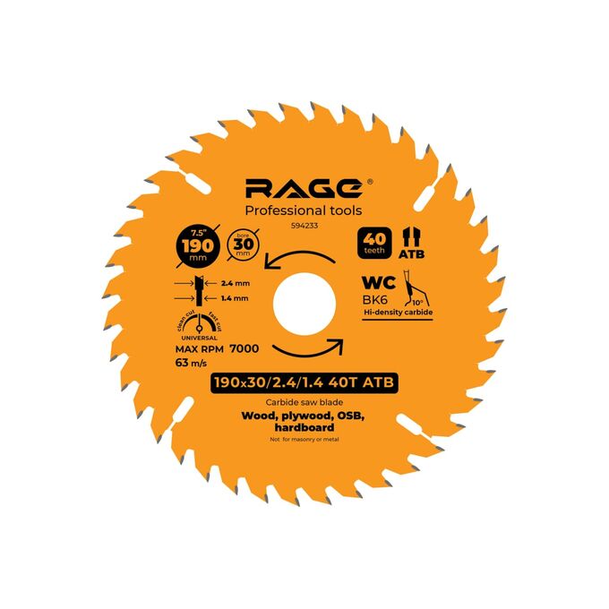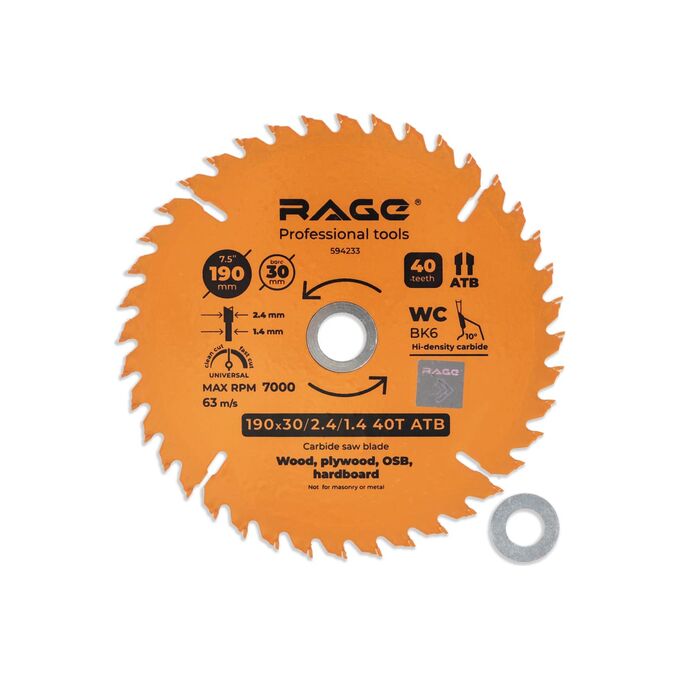 Диск пильный VIRA by Rage Universal 594233 190 мм (7 1/2”) z40 посадка 30+20/16