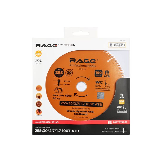 Диск пильный VIRA Сlean Сut 594240 255мм (10”) z100 посадка 30+25,4/20/16 rage by