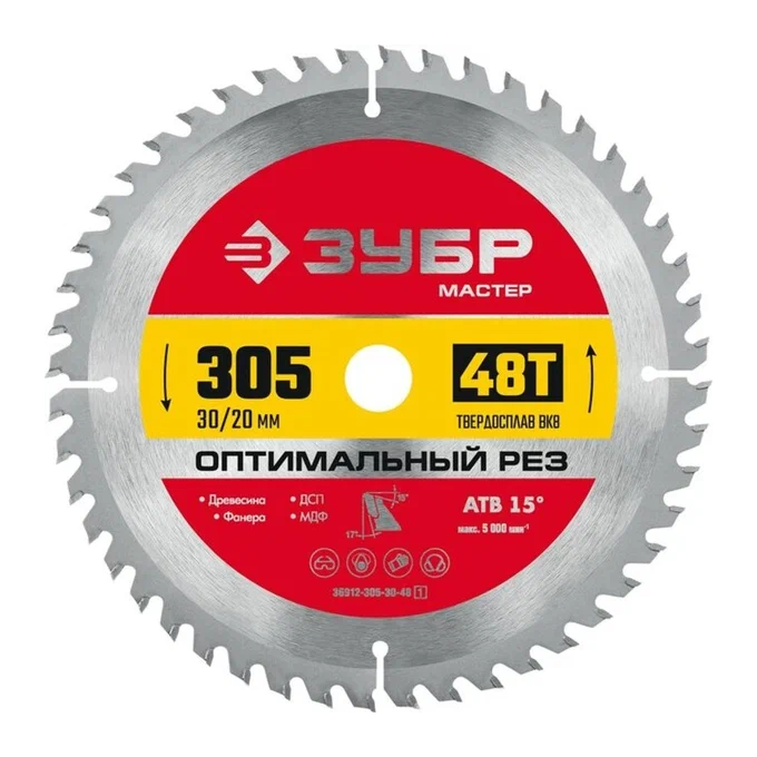 Диск пильный Зубр 36912-305-30-48_z01 по дереву d-305мм dпосад.-30мм циркулярные пилы