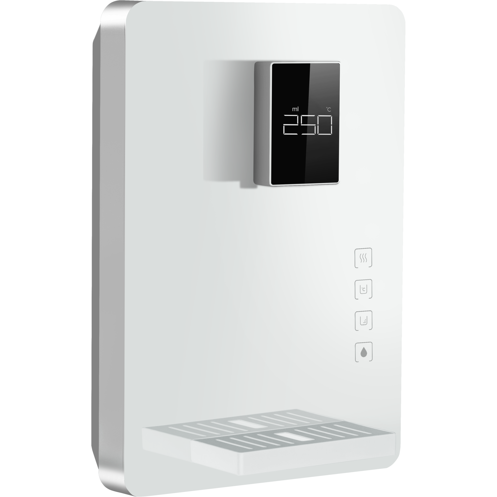 Еще одно преимущество модели — возможность выбирать объем автоподачи воды: 250, 500 или 750 мл. Если объем не выбран, разовая подача, независимо от температуры воды, по умолчанию составляет 250 мл. Аналогично в случае отключения электропитания объем воды по умолчанию возвращается к показателю 250 мл.
