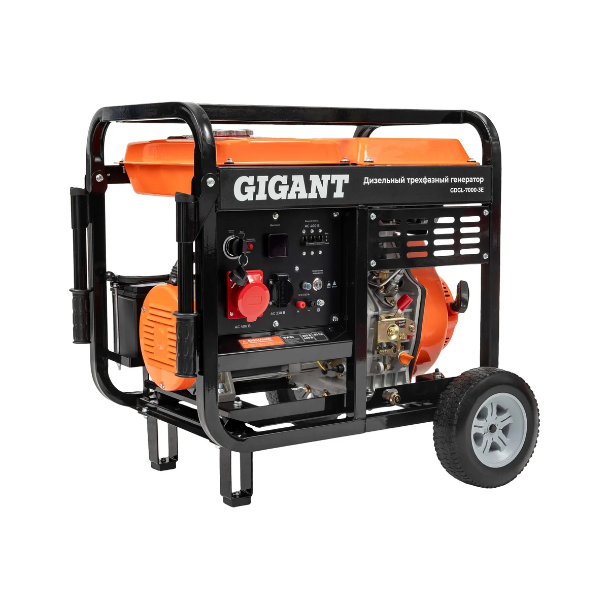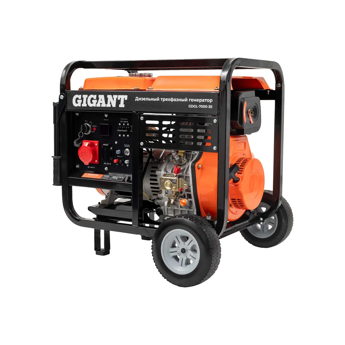 Дизельный трехфазный генератор Gigant GDGL-7000-3E представляет собой универсальное мобильное оборудование, которое служит для энергоснабжения различных устройств и приборов. Благодаря медной обмотке ротора и статора модель отличается надежностью и долговечностью. Металлическая силовая рама защищает рабочие узлы агрегата от повреждений при механических воздействиях. На панели управления располагаются стрелочный вольтметр для контроля напряжения и две розетки для быстрого подключения потребителей. Электростартер гарантирует легкий запуск аппарата в любое время года.
