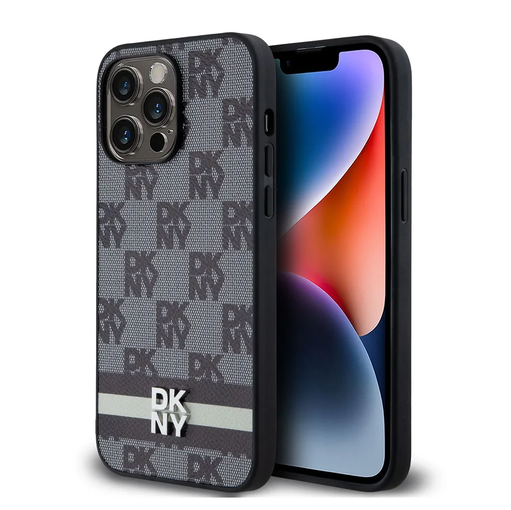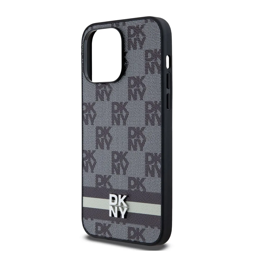 DKNY для iPhone 14 Pro чехол PU Checkered Printed stripes Metal logo Hard Black