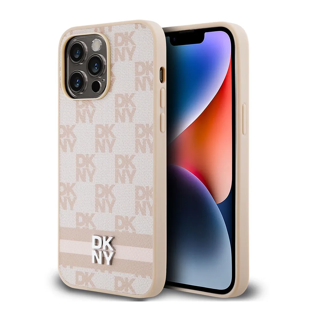 DKNY для iPhone 14 Pro Max чехол PU Checkered Printed stripes Metal logo Hard Pink
