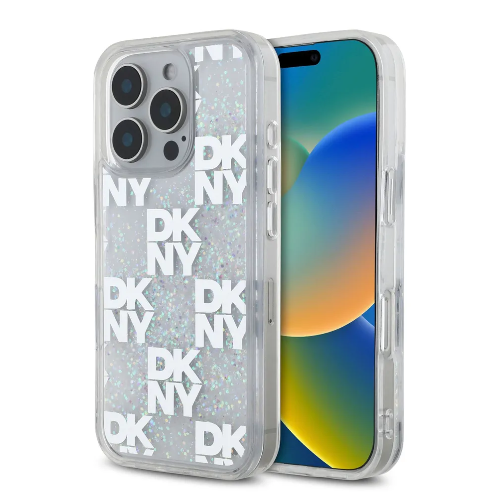 DKNY для iPhone 15 Pro Max чехол Liquid Glitter Checkered Hard White