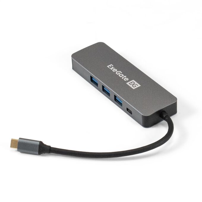 Док-станция Exegate ExeGate DUB-31C/PD/H EX293984RUS (кабель-адаптер USB Type-C - 3xUSB3.0 + PD 60W + HDMI 4K 30Hz, Plug Play, серый)