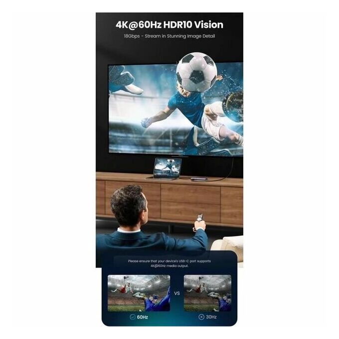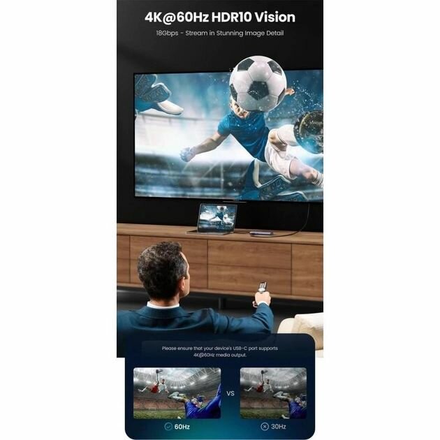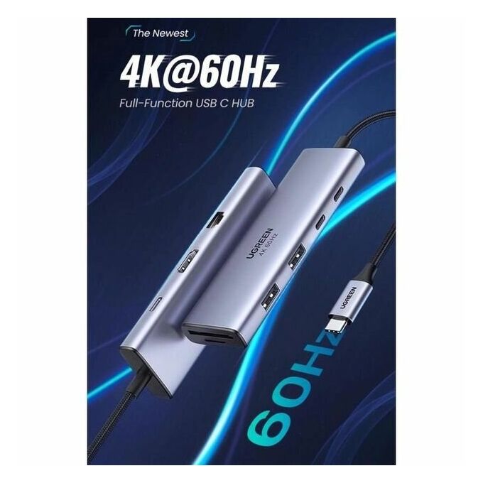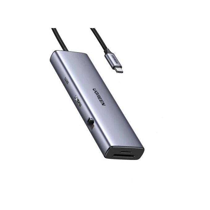 Док-станция Ugreen CM498 (15375) USB-C to 2*USB3.0+2*USB-C+HDMI+RJ45+SD&TF +PD port Docking Station space gray