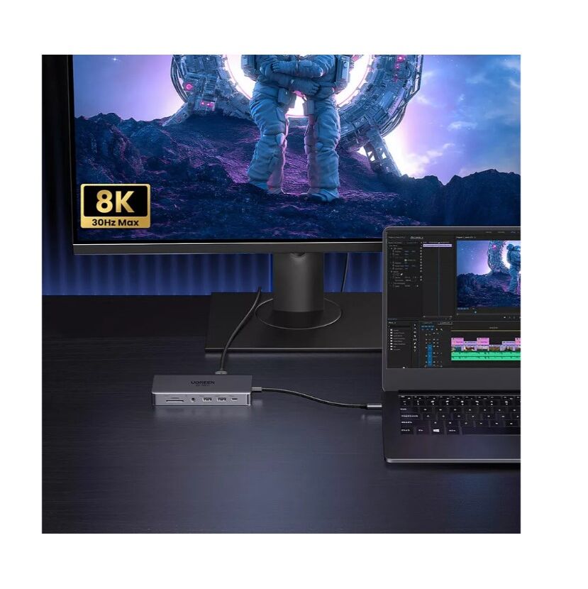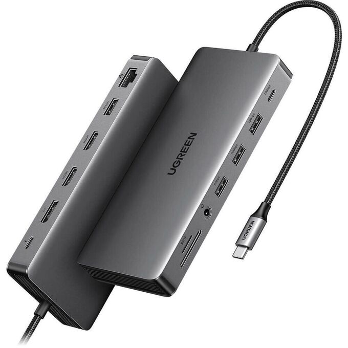 Док-станция UGREEN CM681 (15978) Revodok Pro 13-in-1 4K@60Hz & 2*HDMI & 1*DP with PD Adapter Gray