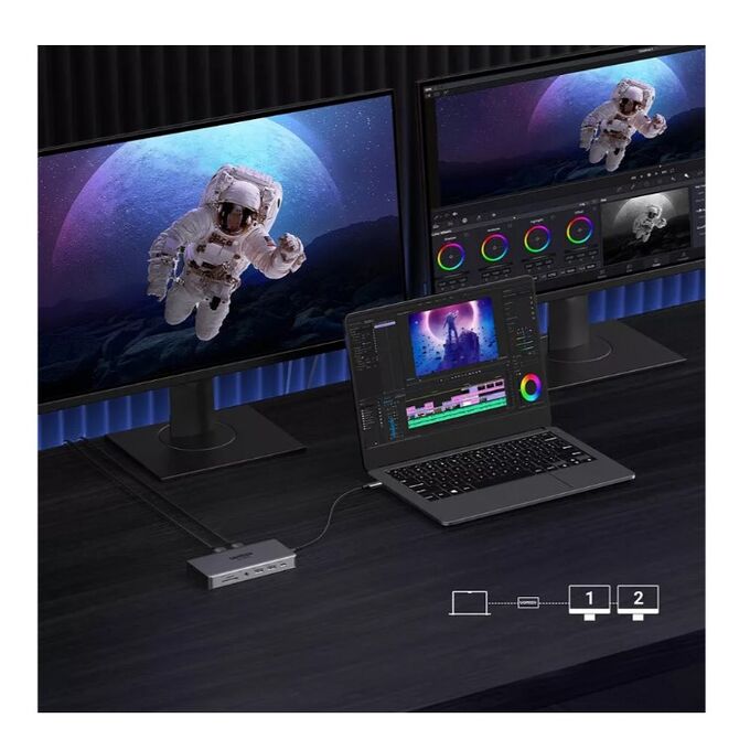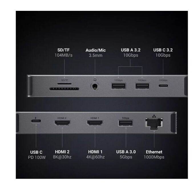 Интерфейс подключения Output: 3.5 мм, USB 3.0, 2 x USB 3.2 Gen2, USB Type-C, USB Type-C PD, 2 x HDMI, RJ-45 / Input: USB Type-C