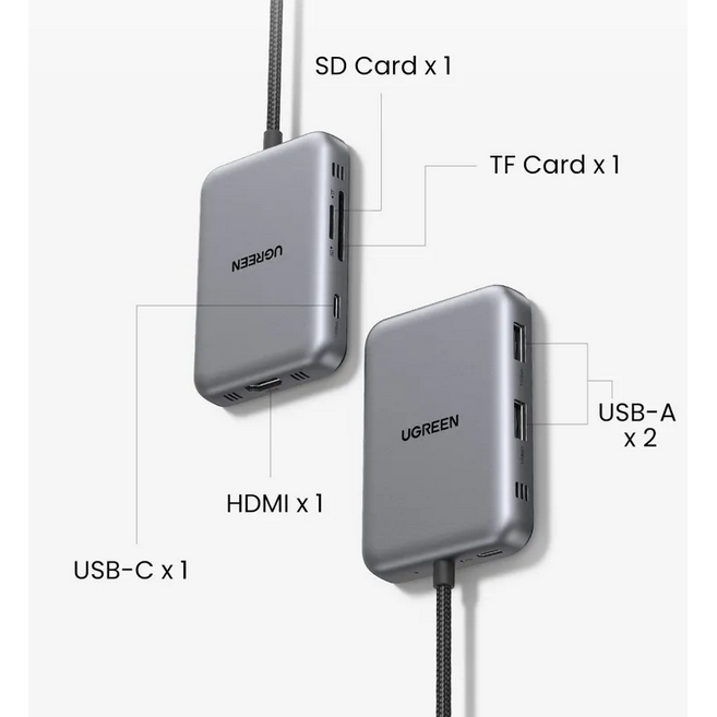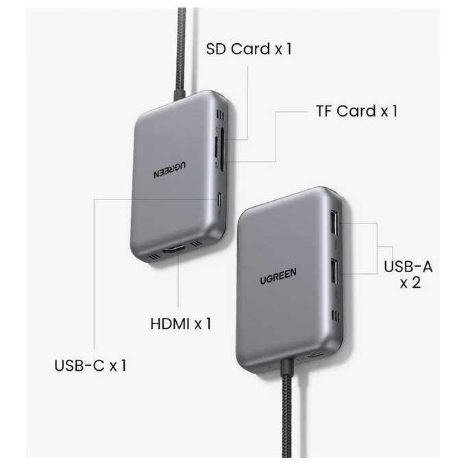 Док станция UGREEN CM896 (65759) 7-in-1 4K 60Hz 1*HDMI 1*USB-C 2*USB-A 1*SD 1*TF Cards USB-C Hub Space Gray