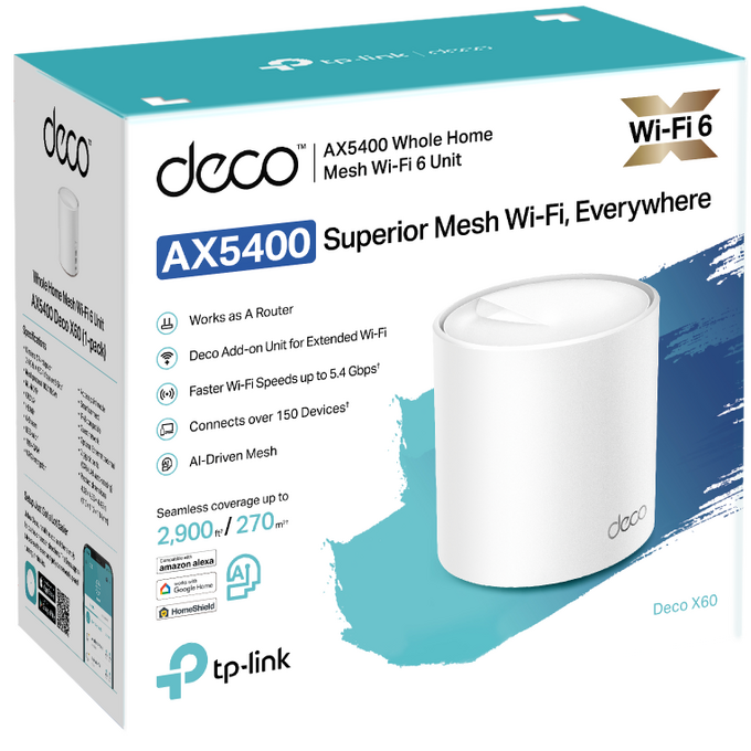 Домашняя Mesh Wi-Fi 6 система TP-Link Deco X60(1-pack) AX5400
