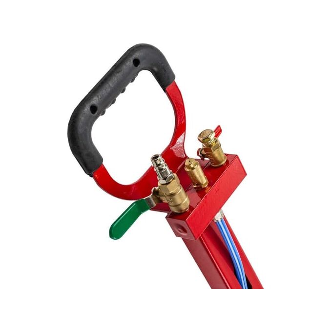 Рассчитан на подключение к компрессору, подающему сжатый воздух под давлением от 6 до 12 Bar. Устройство приводится в действие путем открытия крана подачи, расположенного на конце управляющей рукоятки.