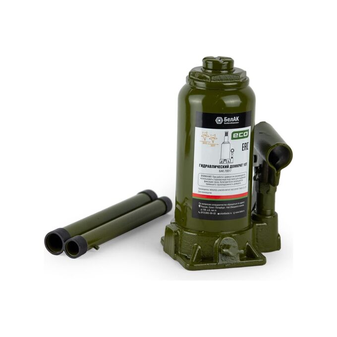 Гидравлический домкрат БелАК 10 т, ECO БАК.70017 служит для плавного подъема автотранспорта весом не более 10 т.