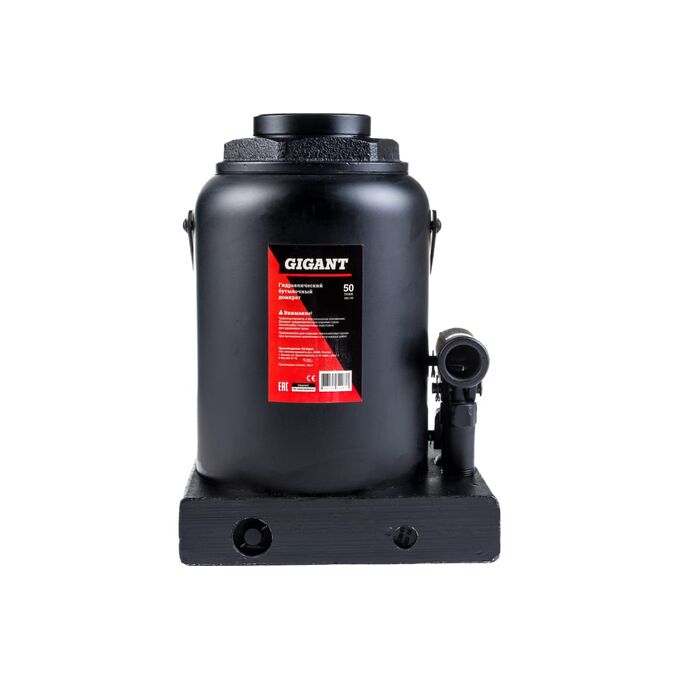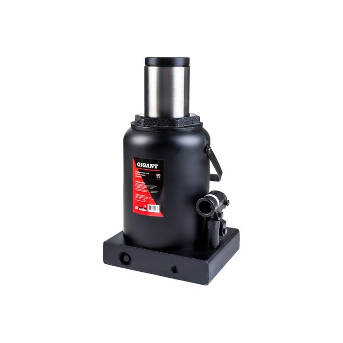 В конструкции предусмотрен предохранительный клапан, который срабатывает при перегрузке и исключает поломку гидравлического бутылочного домкрата Gigant 50Т HBJ-50.