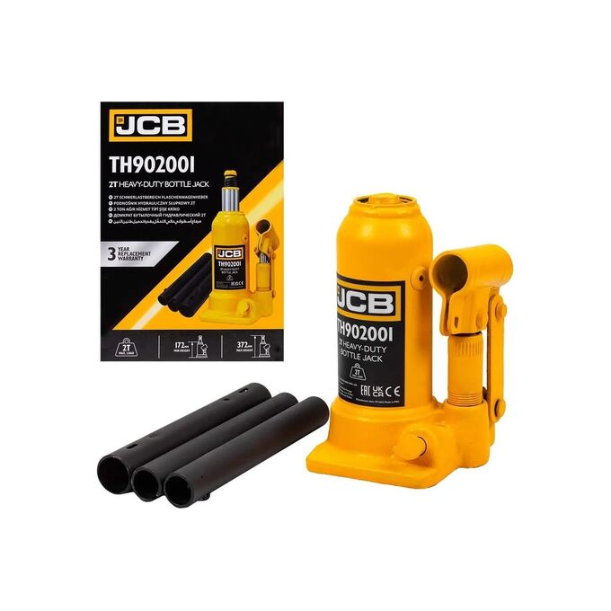 Бутылочный гидравлический домкрат от бренда JCB с грузоподъемностью до 2 тонн. Мощное и надежное средство для поднятия и удержания автомобилей.