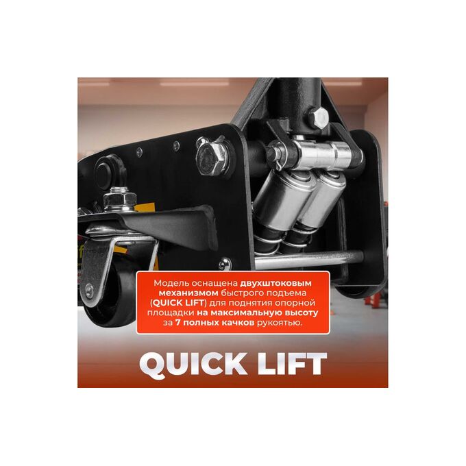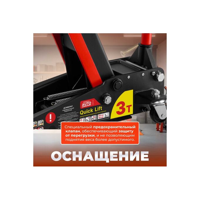 Гидравлический подкатной домкрат STARTUL с быстрым подъемом 3 т Auto ST8013-03 - профессиональный домкрат с ручным приводом, предназначенный для поднятия грузов на высоту. Отличается простотой обслуживания и надежностью в эксплуатации, позволяет при небольшом рабочем усилии осуществлять плавный подъем груза и его точную фиксацию на заданной высоте. Модель оснащена двухштоковым механизмом быстрого подъема (QUICK LIFT) для поднятия опорной площадки на максимальную высоту за 7 полных качков рукоятью.