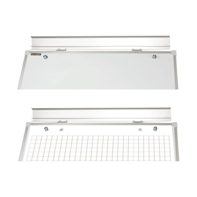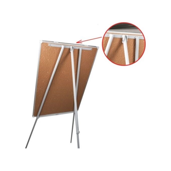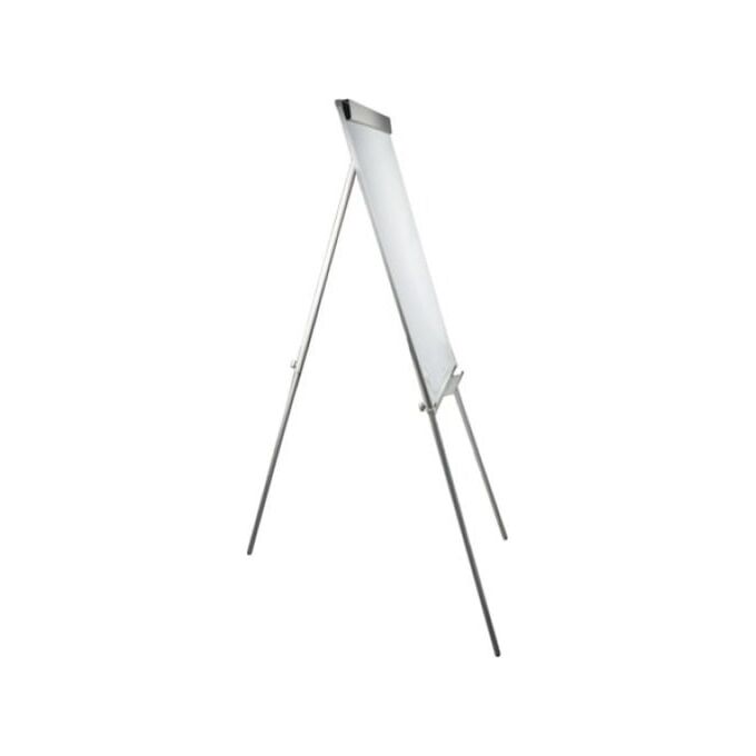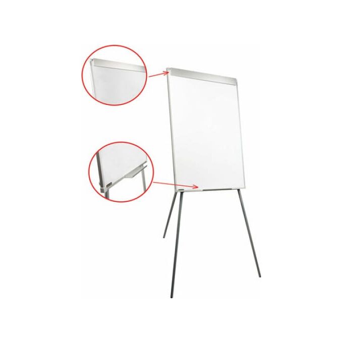 Белое лаковое покрытие предназначено для письма специальными маркерами для белой доски. Размер доски – 100х70 см. Регулируется по высоте до 164 см. Устанавливается на треноге. Металлическая поверхность позволяет размещать объявления при помощи магнитов. Блокнот крепится при помощи неподвижных винтов.