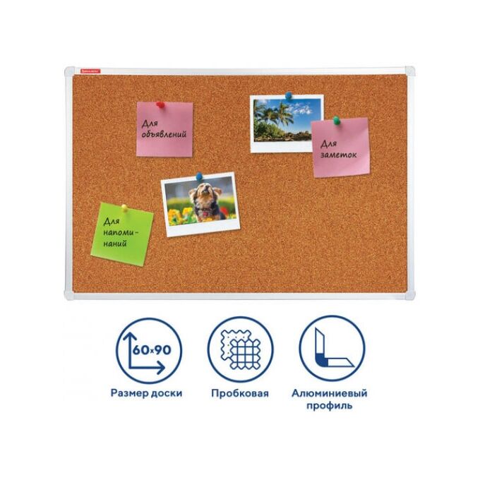 Доска пробковая для объявлений BRAUBERG 231712 60х90см, алюминиевая рамка