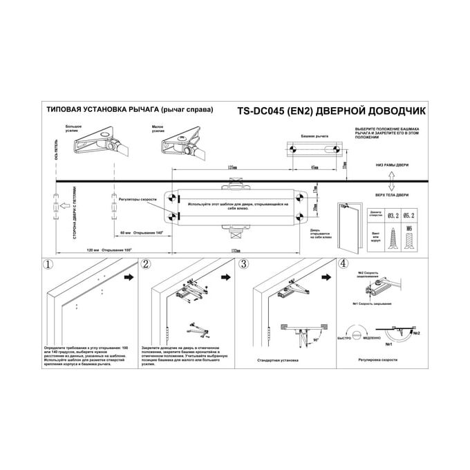 Доводчик двери Tantos TS-DC045 (00-00034165) 2 класс белый