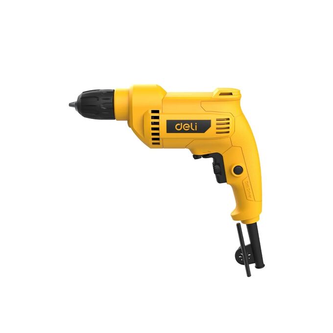 Deli DL-DZ10-E2 — мощная и удобная сетевая дрель для любых задач!Двигатель 500 Вт и скорость до 3300 об/мин позволяют легко сверлить дерево, металл и пластик, а продуманная конструкция делает работу комфортной даже при интенсивном использовании.