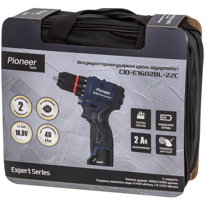 Дрель-шуруповерт аккумуляторная Pioneer CID-E1602BL-22C