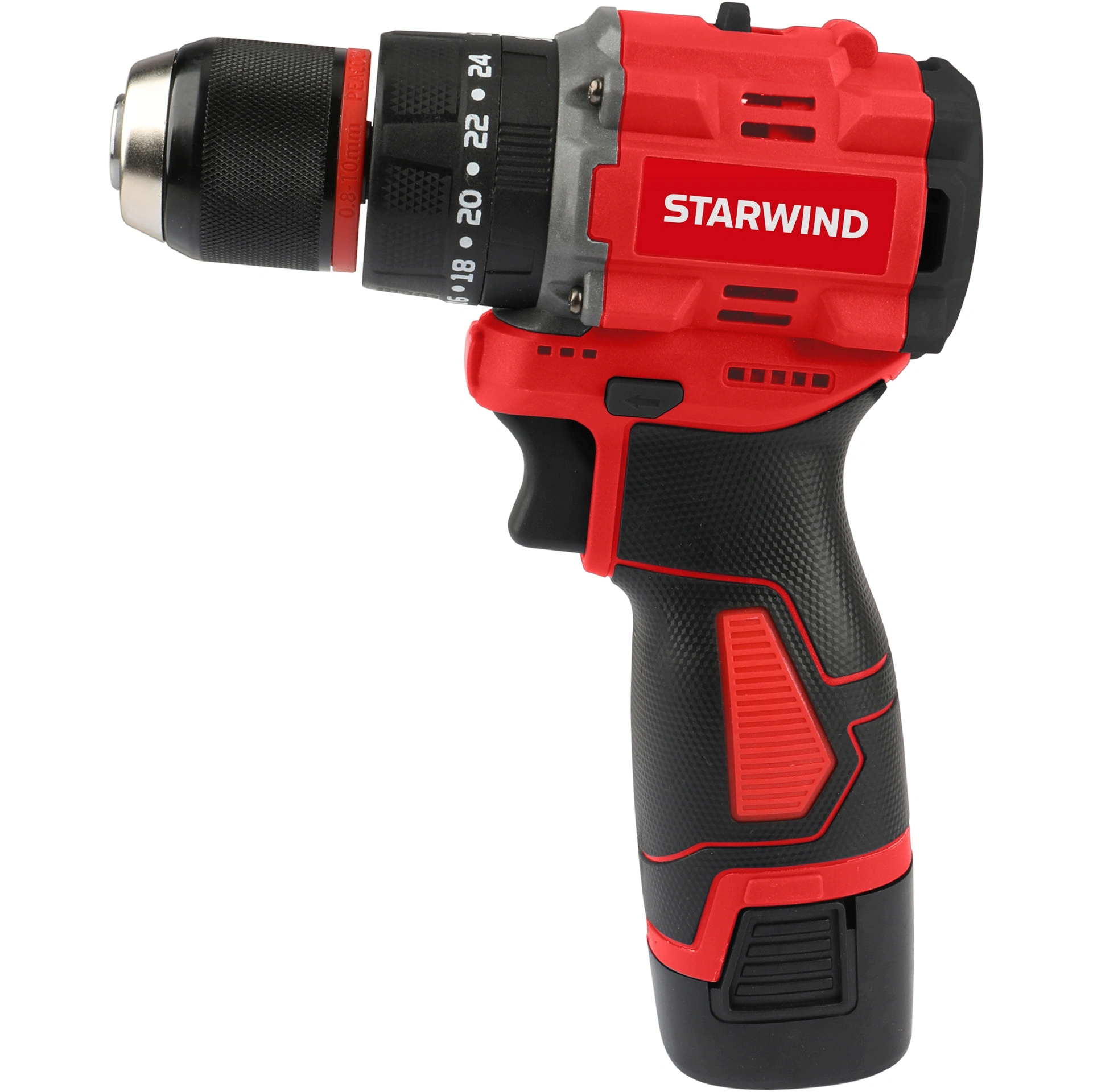 Дрель-шуруповерт аккумуляторная STARWIND 16В, БЕСЩЕТОЧНЫЙ, 55Нм, УДАР, 2 скорости, 2 АКБ 2,0Ач, кейс + комплект 13 предметов
