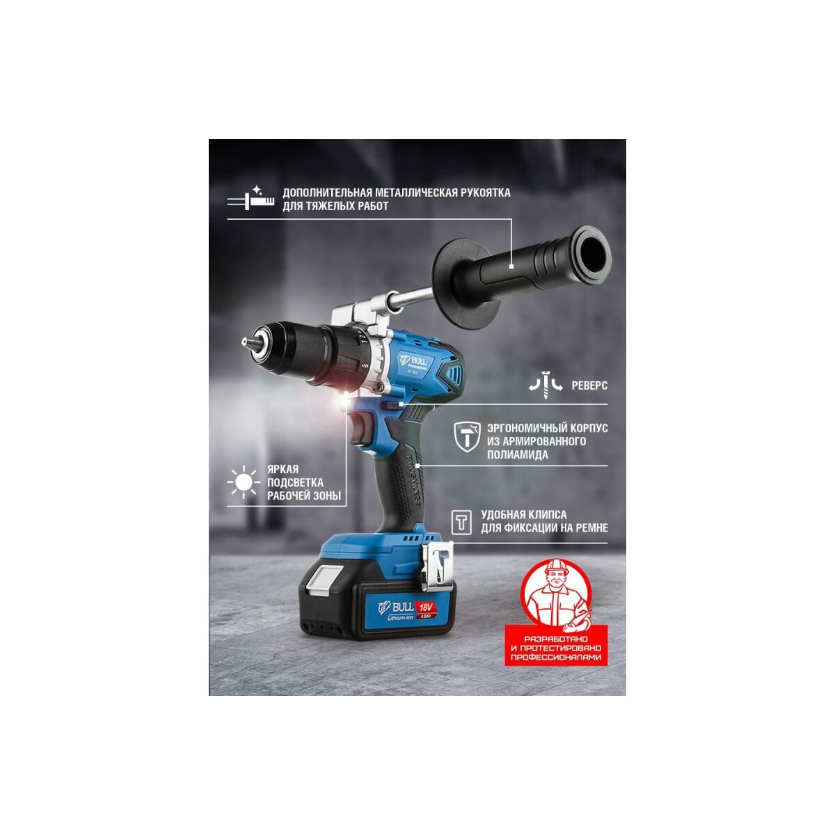 Дрель-шуруповерт BULL SR 1802 (04040329) аккумуляторная (2 АКБ+ЗУ)
