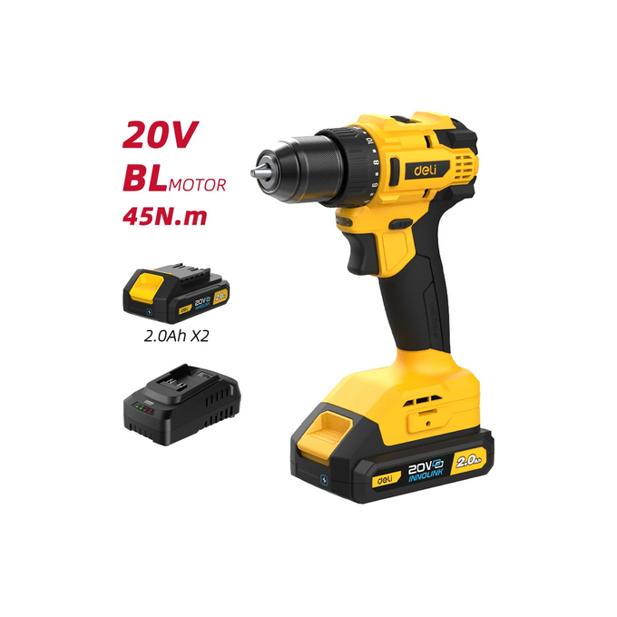 Дрель-шуруповерт Deli DC120 (2 АКБ*2Ач+ЗУ, 20В, 45Нм, сумка)