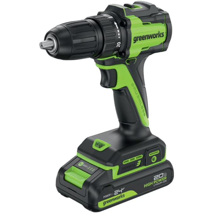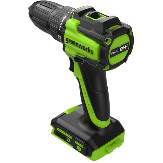 Дрель-шуруповерт Greenworks DD345 (3708307CUA) 24V аккумуляторная, бесщеточная, 27/45Нм, 13мм, 1х2Ач, ЗУ, кор