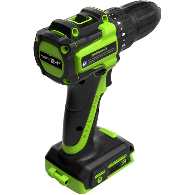 Дрель-шуруповерт Greenworks DD345 (3708307CUB) 24V аккумуляторная, бесщеточная, 27/45Нм, 13мм, 1х4Ач, ЗУ, кор