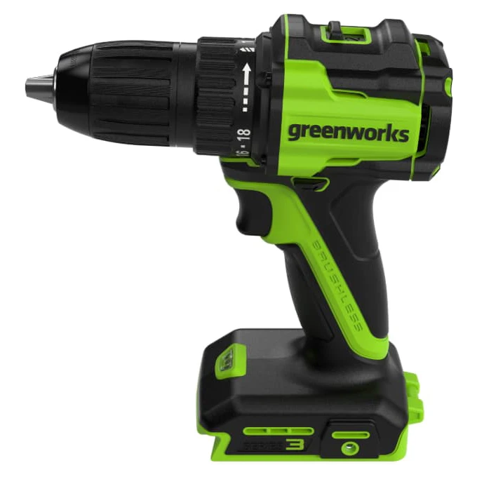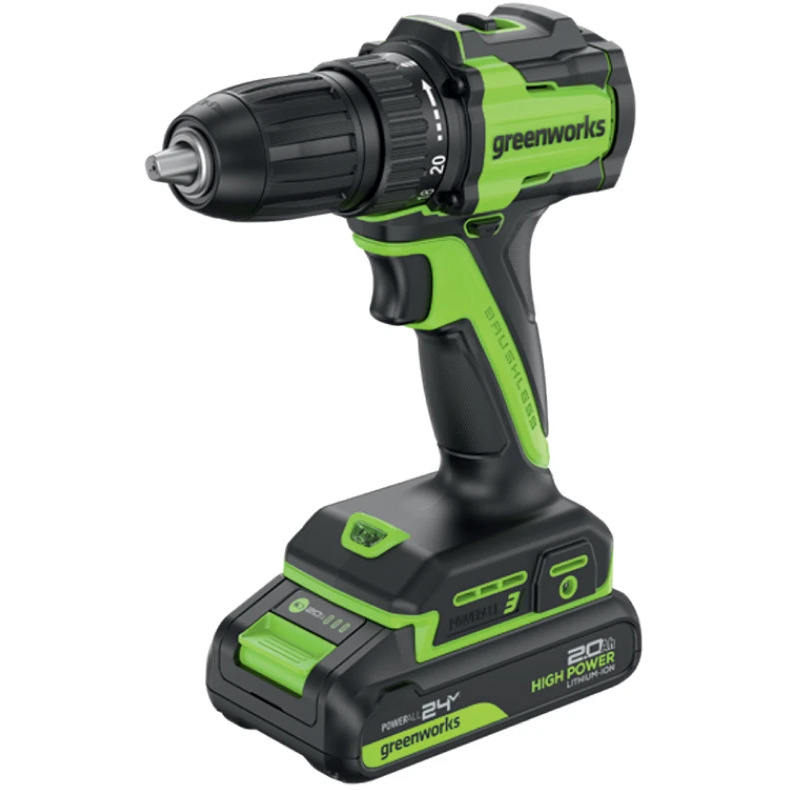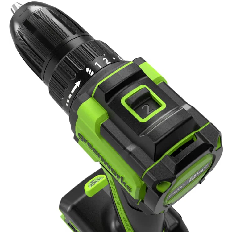 Дрель-шуруповерт Greenworks DD345(3708307CUC) 24V аккумуляторная, бесщеточная, 27/45Нм, 13мм, 2х2Ач, ЗУ, кор