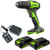 Дрель-шуруповерт Greenworks GD24DD35 (3704007CUC) аккумуляторная, 24V, б/щет, 29/35Нм, 2х2Ач, ЗУ, кор