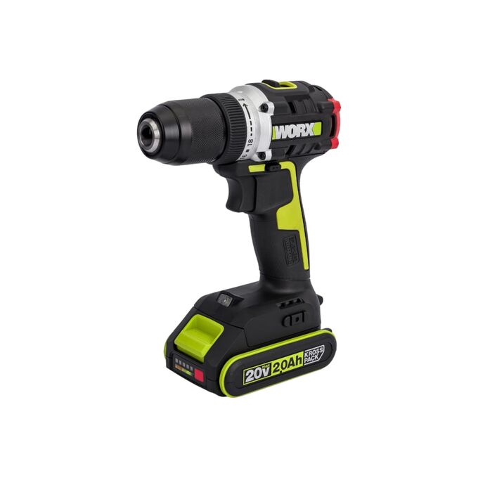 Дрель-шуруповерт WORX WU182 Professional аккумуляторный , бесщеточный 20В, 60Нм, 2Ач х2, ЗУ 2 Ач, сумка WU182