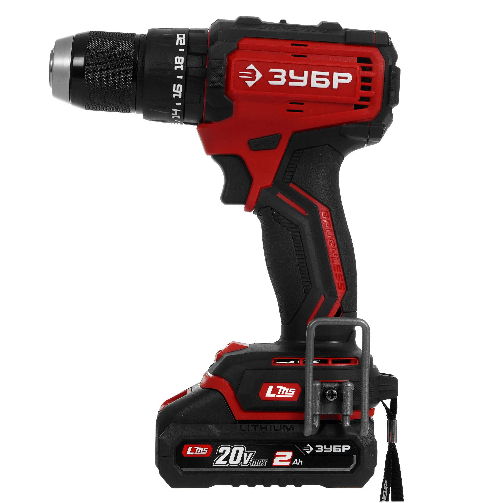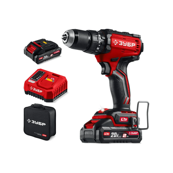ЗУБР 20 В, 65 Н·м, 2 АКБ LMS (2 А·ч), бесщеточная ударная дрель-шуруповерт, сумка ДБУ-65-22 - бесщеточная дрель-шуруповерт ЗУБР системы LMS с увеличенным крутящим моментом предназначена для быстрого заворачивания саморезов до 8 мм диаметром и сверления отверстий до 30 мм в дереве. Длительная работа от одного заряда обеспечивается эффективным двигателем BRUSHLESS. Расширенная функциональность за счет ударного режима работы. Комплектация с двумя аккумуляторами позволяет работать практически без остановки.
