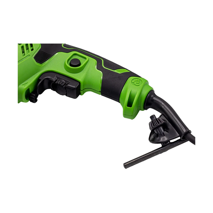 Безопасную продолжительную работу обеспечит продуманный механизм защиты от пыли, минимизирующий загрязнение обмотки якоря. При этом стальной корпус редуктора эффективно отводит избыточное тепло, продлевая тем самым срок службы инструмента. Электродрель поддерживает функцию реверса.