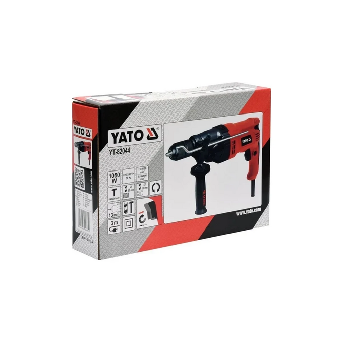 Ударная дрель YATO 1050 Вт YT-82044 - чрезвычайно мощная двухскоростная дрель мощностью 1050 Вт, обеспечивающая очень высокий крутящий момент на первой передаче, идеально подходит для сверления кольцевыми пилами и шнеками. На второй передаче с молотком, будет хорошо работать при сверлении в бетоне, даже сверлом 20 мм.