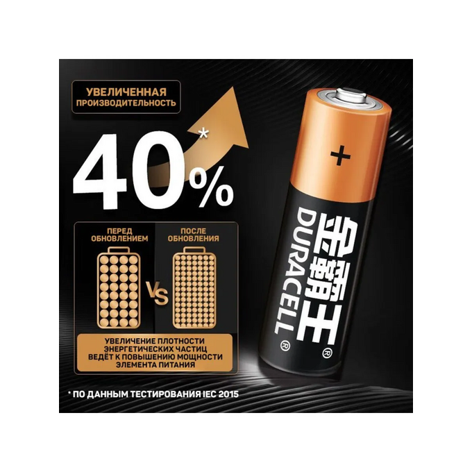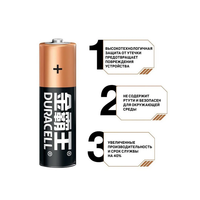 Батарейки Duracell серии алкалин работают в 3 раза дольше солевых аналогов за счет улучшенной марганцево-цинковой основы.