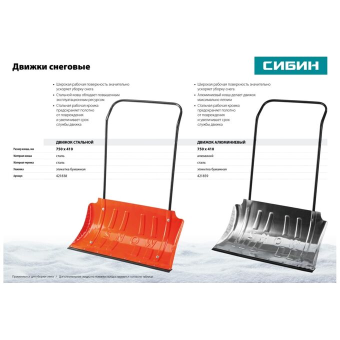 Движок СИБИН 421859 снеговой алюминиевый 750мм