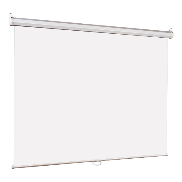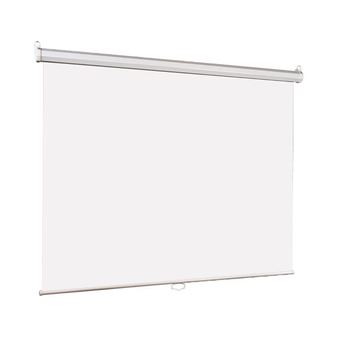Размер полотна: 150 х 150 см, угол обзора 160°, универсальное полотно с белой матовой поверхностью, равномерное распределение света, отсутствие швов на проекционной поверхности, пружинный механизм