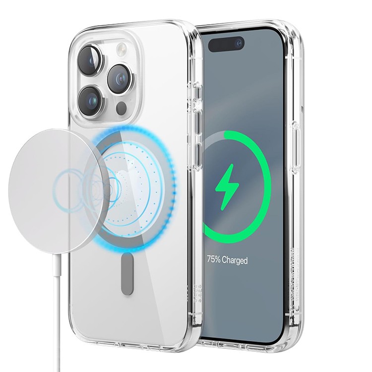 Гибридный чехол-накладка изготовлен из пластика и силиконового бампера, благодаря которому он без труда надевается и снимается. Не имеет технологических швов, обладает специальным дополнительным покрытием от царапин (anti-scratch). Во внутреннюю часть корпуса встроены магниты для надежного сцепления с устройствами MagSafe. Перфорированная сетка внутри предотвращает появление конденсата и помогает избежать прилипания чехла к смартфону. Боковые грани чехла слегка выступают над плоскостью экрана - это препятствует появлению на нём царапин, возникающих при соприкосновении с твёрдыми поверхностями. Высокий бортик вокруг камеры оберегает объектив от механических повреждений. Боковые клавиши продублированы специальными накладками, не затрудняющими управление, а все отверстия выполнены точно и аккуратно. Простой и стильный, практически незаметный аксессуар идеально облегает телефон и защищает его от повреждений, которые могут быть получены в процессе ежедневной эксплуатации.