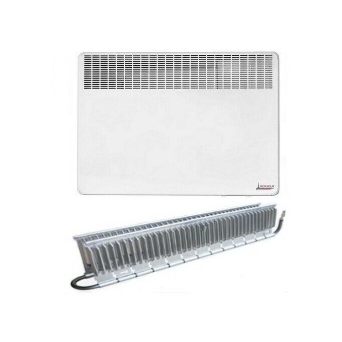 Электрические конвекторы Bonjour Turbo Heat – оптимальное решение для тех, кто ищет альтернативу газовому отоплению. Надежные и безопасные конвекторы от ведущего французского производителя Groupe Atlantic, станут незаменимыми для долгосрочного использования в качестве основного или надежного дополнительного отопительного оборудования, являются новинкой в эконом сегменте рынка отопительных приборов. Конвекторы оснащены закрытым П-образным, безопасным, бесшумным и долговечным нагревательным элементом, а применённая технология Soft Air обеспечивает комфортный микроклимат в помещении - не сушит воздух, не сжигает кислород. Благодаря естественной конвекции воздуха конвектор быстро прогревает помещение, даже если в доме или квартире высокие потолки. Ручка регулировки температуры находится на боковой панели и очень проста в управлении. Конвектор можно монтировать на стену или ставить на пол, используя специальный комплект подставок (опция). Какой бы вариант крепления не был выбран, конвектор будет абсолютно безопасен для семей, где есть маленькие дети. Закрытый нагревательный элемент не позволяет поверхности конвектора сильно нагреваться и устраняет угрозу ожогов, температура внешней панели не превышает 45°C. Округленные углы не только придают дизайну утонченности, но и надежно защищают от случайного травмирования. Простое крепление к стене с помощью надежного кронштейна делает монтаж простым и удобным, а возможность комплектации комплектом подставок позволяет выбрать наиболее комфортное решение по его эксплуатации. Встроенный датчик падения гарантирует выключение конвектора при падении. Встроенная защита от перегрева и двойная изоляции обеспечивают класс защиты II. В комплекте идет кабель, вилка, надежный кронштейн. Качество конвекторов подтверждено Европейским сертификатом соответствия.