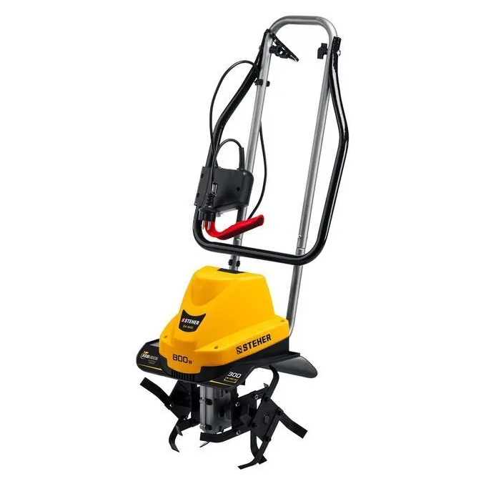 Оснащен металлическими фрезами с шириной захвата 30 см и обрабатывает почву на глубину до 20 см.