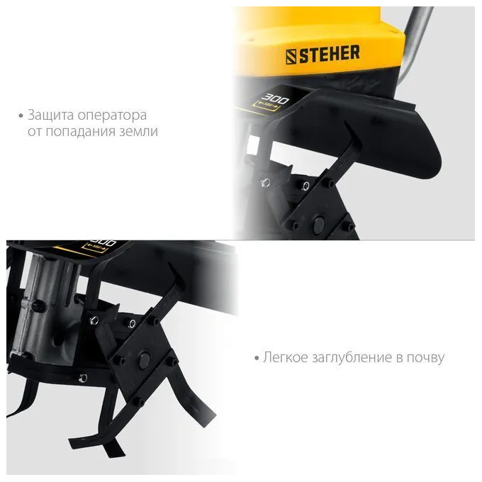 На корпусе предусмотрен щиток, который защищает оператора от попадания земли