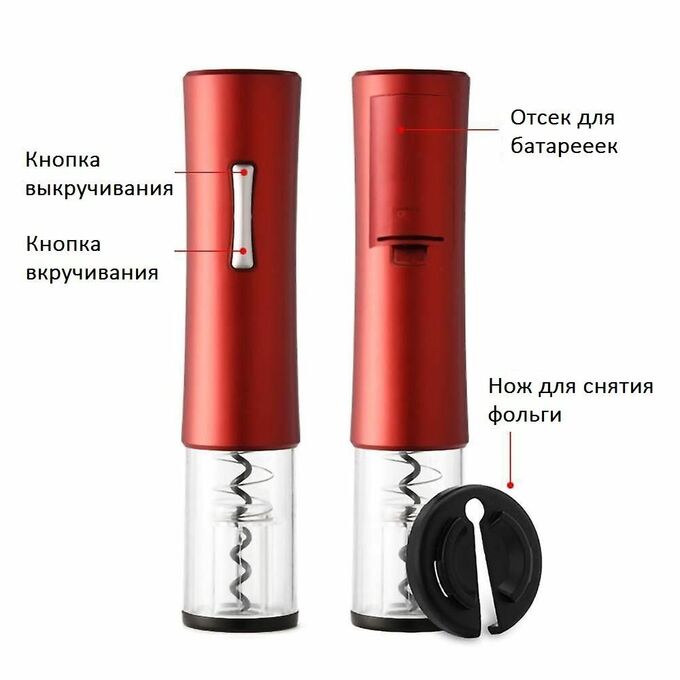 Электрический штопор ZEIDAN Z-11110-01, высококачественный пластик и сталь, 4x1,5 V AA батарейки в комплекте